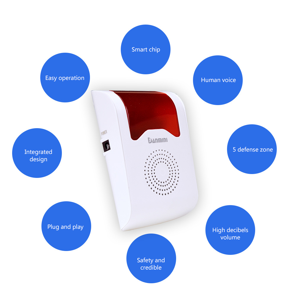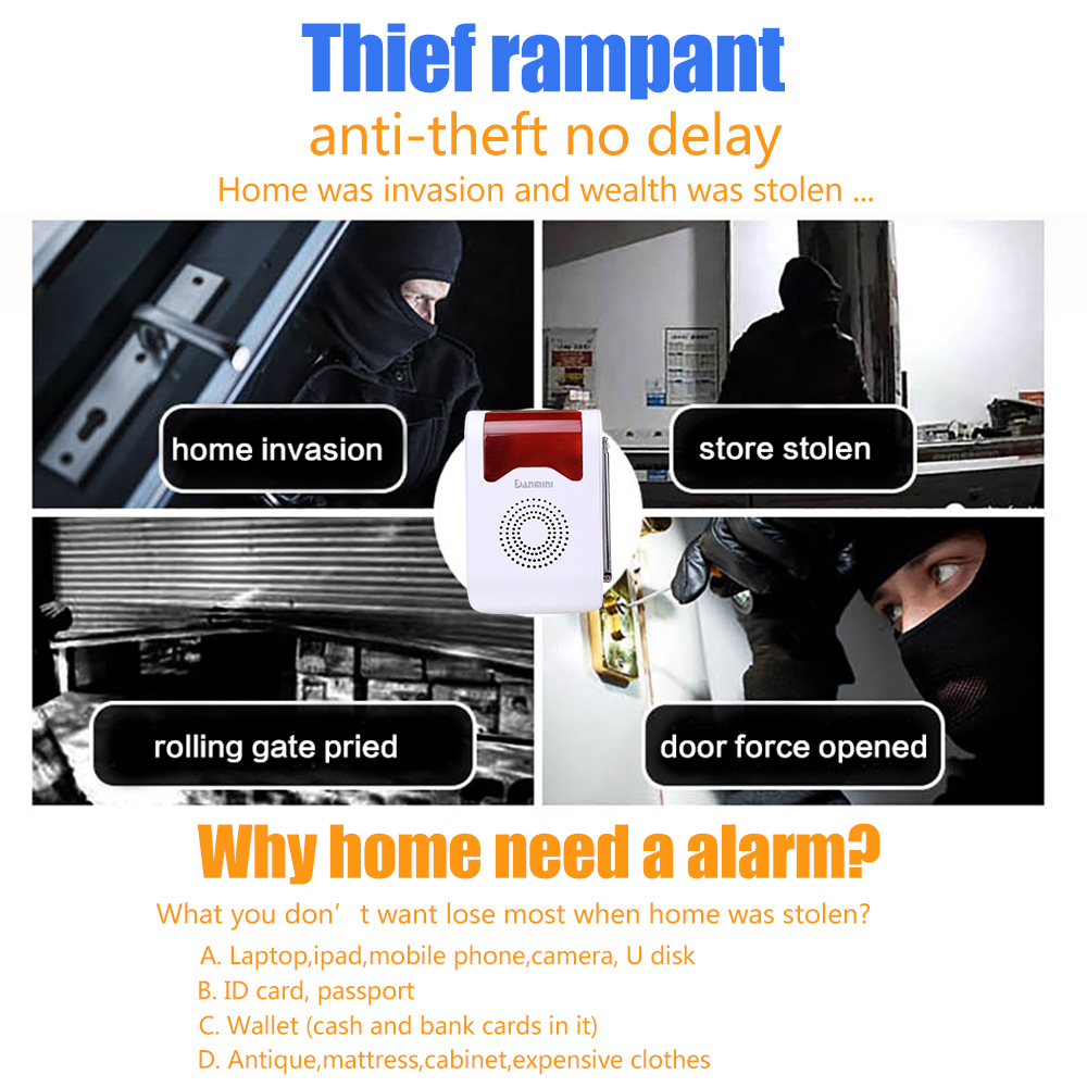 - It adopt newest wireless technology,no need wiring,easy to install and operate. main panel design with voice, acousto-optic and siren all in one. The learning frequency of alarm is 433MHz/315MHz, work with various detectors which encoded with 1527,2262.
