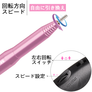 0〜2万rpmの間に自由に調整できます。左右回転可能で左利きの方も心配なし。