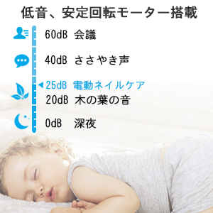 【静かで安全】最新低音・安定回転モーター搭載、静かで赤ちゃんが寝ている間に起こさずケアすることができます。