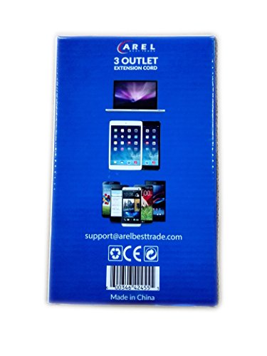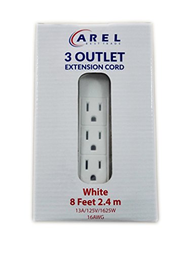 Arel Best Trade 3 Outlet Extension Cord, 8 Feet Cable with Ebook (White)