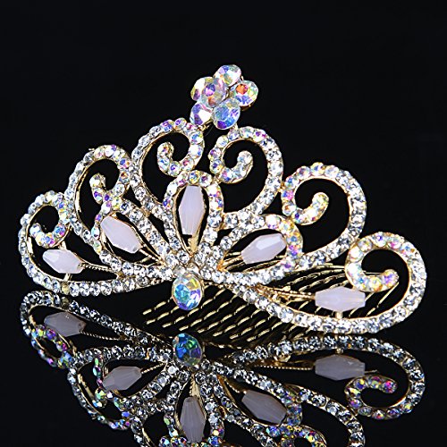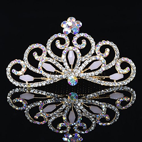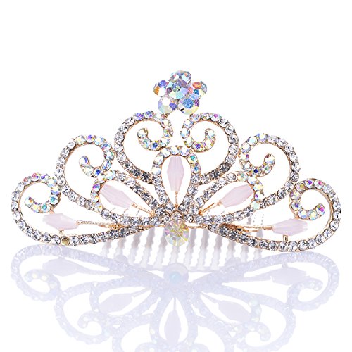 Remedios Colorful Rhinestoned Wedding Flower Girl Tiara Kids Crown Princess Headpiece Hair Comb, Blushing Pink