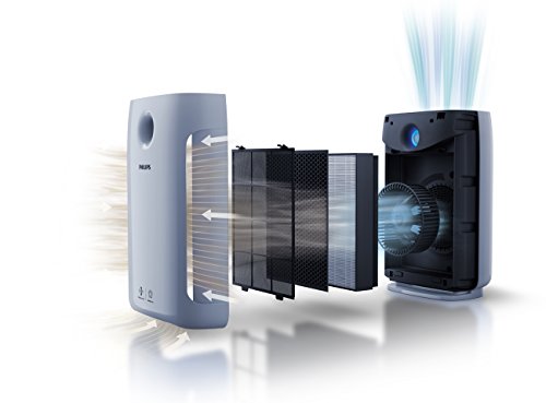 -. Feature : Reduces odors, gases and allergens, including pet dander and pollen, with 3 filters (pre-filter, True HEPA filter, Active Carbon filter). / Captures up to 99.97% of particles as small as 0.3 microns (the size of most common allergens, bacteria, and viruses) from the air that passes through the filter. / With professional-grade performance, AeraSense technology detects even the slightest change in indoor air quality and auto-adjusts the fan speed to maintain clean air. / Shows real-time indoor air quality via color ring and numerical Indoor Allergen Index on the dashboard of the air purifier / Ideal for medium to large rooms such as your living room.