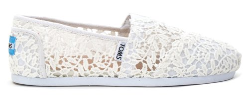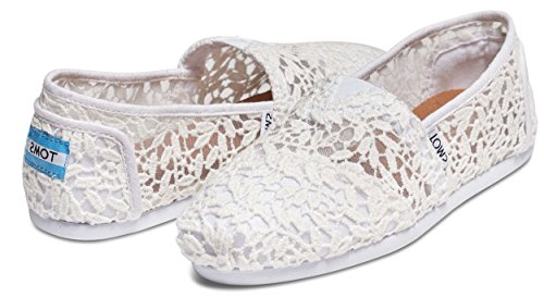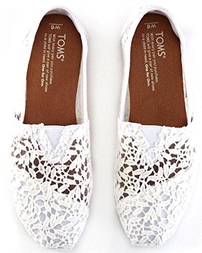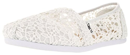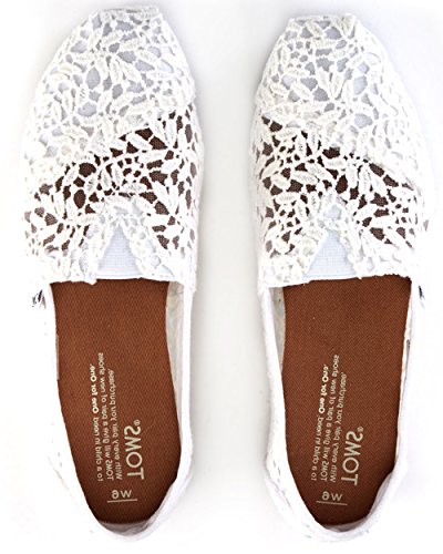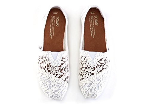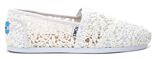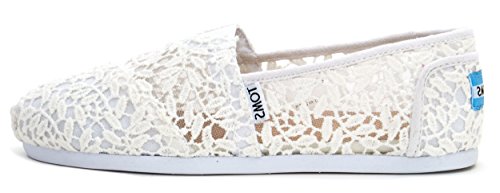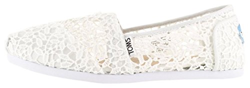 TOMS Women's White Lace Leaves Alpargata Flat