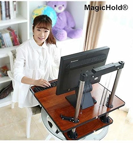 -. Binding : Office Product -. Brand : UPSTAND -. Color : wood -. EAN : 0616043985466 -. Feature : Heavy duty Sit and Stand table desk riser mount for laptop(any size) or Monitor upto 27" / Comes with keyboard tray that slide in and out / Elastic sP.R.Ing wire helps sliding up/down the deck easily without muscle / can hold upto 160 pounds ( most size monitor or laptop in market) / It can be placed onto Desk, table , anywhere and allows your working position to Sit or Stand flexible to your convenience. -. Label : UPSTAND -. Manufacturer : UPSTAND -. MPN : sit stand table -. PackageQuantity : 1 -. PartNumber : sit stand table -. ProductGroup : PC Accessory -. ProductTypeName : COMPUTER_COMPONENT -. Publisher : UPSTAND -. Studio : UPSTAND -. Title : Magichold Adjustable Height Table Top Sit Stand computer monitor desk riser table Desk mount for monitor/laptop-White -. UPC : 616043985275