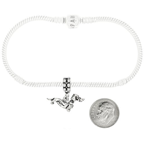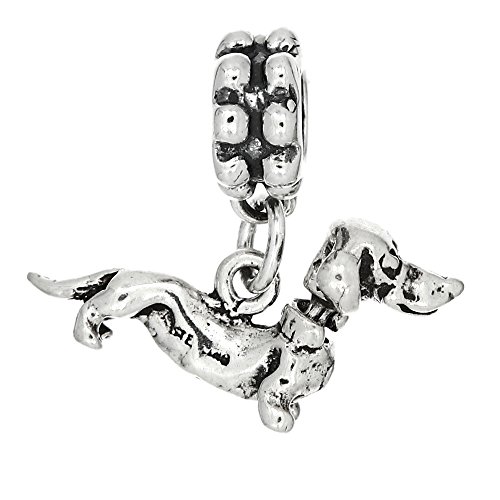 -. Title : Sterling Silver Three Dimensional Dachshund Dog Dangle Bead Charm