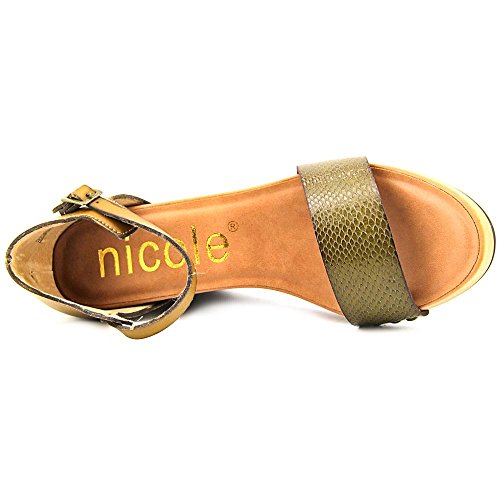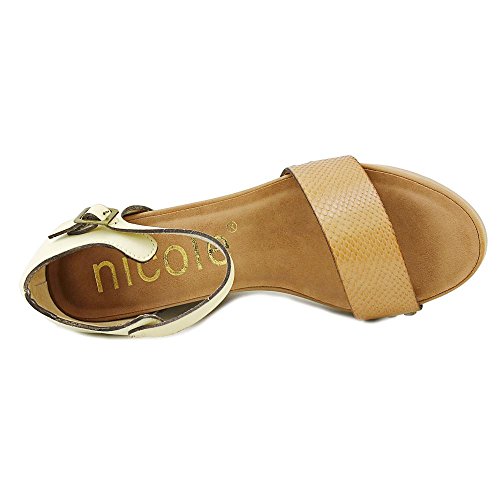 Studio : Nicole Publisher : Nicole Binding : Apparel Product Description Flaunt your chic attitude in style with the women's Nicole Savannah wedge sandal. Made of supple faux leather, this wedge sandal showcases stud details on the vamp for a unique look. It has an adjustable strap with buckle closure for easy on/off and a snug fit. Its synthetic lining with a blend of cushioned footbed imparts comfort all day long. The synthetic outsole mounted over the stacked-look heel delivers traction on all types of surfaces. Move out in style with the women's Nicole Savannah wedge sandal. 0