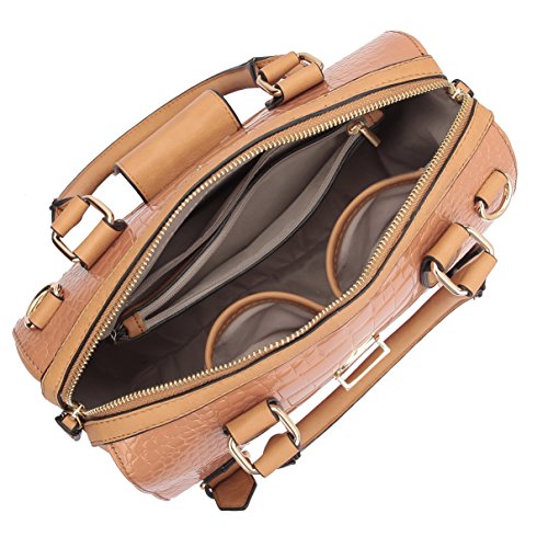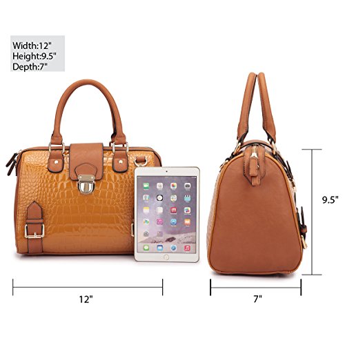 -. Brand : MKY -. Department : womens -. Feature : Dimensions: 12"W x 9.5"H x 7"D / Handle Drop Length: 5"/ Shoulder Strap Length: End to End 48" / Material: High quality faux leather with durable golden hardware, sturdily constructed with detailed streamlined stitching and fully lined with smooth polyester lining. Waterproof, wear resistant and durable in use. / Top Zipper Closure/Rolled Top Handles/Detachable, adjustable shoulder strap / Interior:Center Divider Zipper Close Pocket/Front Wall Open Top Item Pockets/Back Wall Zipper Pocket / Our goal is to ensure that you're 100% satisfied with your purchase right out of the box. If you're not satisfied for whatever reason, we will gladly accept your return provided that you request authorization within 30 business days of the delivery date. -. Model : MKY-XL-07-6901/XL-10-6901 -. ProductGroup : Shoes -. ProductTypeName : HANDBAG -. Title : MKY Satchel Shoulder Bag Push Lock Vintage/Patent Faux Leather Multicolor w/ Removable Shoulder Strap