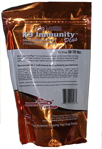 -. Binding : Misc. -. Brand : Aloha Medicinals -. EAN : 0835186005033 -. Feature : K9 Immunity Plus the most effective insurance you can use to keep your dog healthy! 100% Made in America. This is cutting-edge 21st century science at its best! Start today and enjoy a longer, healthier and happier lifetime with your best friend! / K9 Immunity PlusTM is an intense immune-boosting daily supplement designed to provide maximum support for dogs with cancer. / This formula includesTransfer Factors and Increases the formula's effectiveness and results. The immune-active polysaccharides in K9 ImmunityTM work by bonding with your dog's immune proteins. / Certified Organic K9 ImmunityTM Immune-activating Polysaccharide Blend 600 mg,Aps 40TM Beef derived Immuno-protein concentrate 160 mg,Omega 3 Concentrate from Fish Oil 400 mg -. Label : Aloha Medicinals -. Manufacturer : Aloha Medicinals -. MPN : AM K9 3070 2PCK -. PackageQuantity : 2 -. PartNumber : AM K9 3070 2PCK -. ProductGroup : Pet Products -. ProductTypeName : PET_SUPPLIES -. Publisher : Aloha Medicinals -. Studio : Aloha Medicinals -. Title : Aloha Medicinals - K9 Immunity Plus - Potent Immune Booster for Dogs 30-70 Pounds - 60 Soft Chews Pack of 2 -. UPC : 835186005033