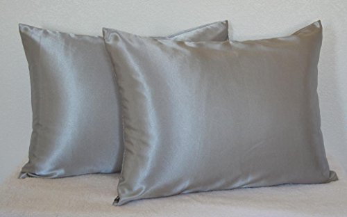 Creative 2 Pieces of Hidden Zipper Satin Pillow Case, Queen Size , Charcoal
