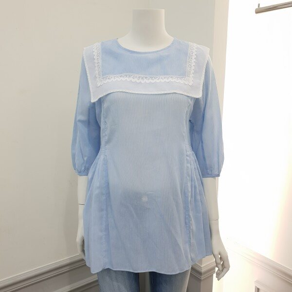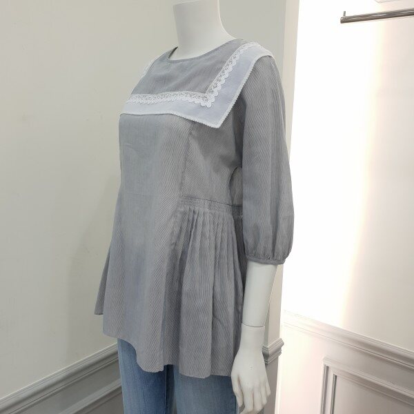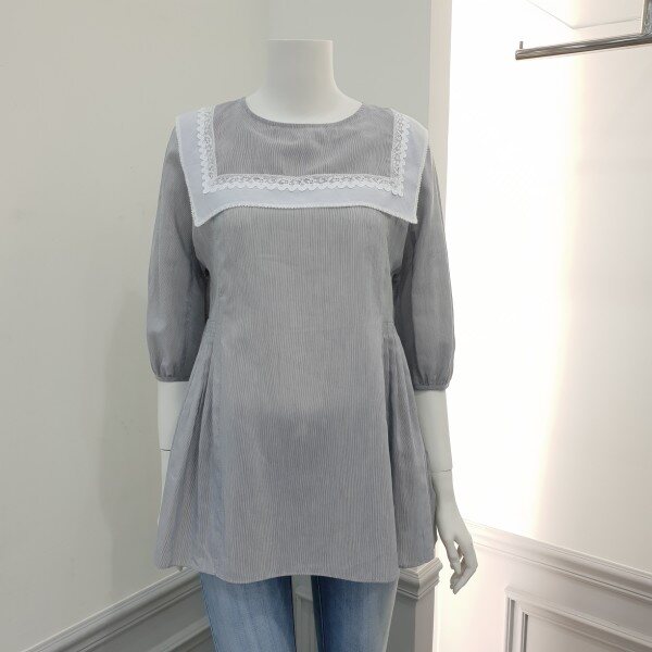 허리라인부터 A라인으로 떨어지는세라넥 블라우스뱃살커버하기 좋은 아이템♡