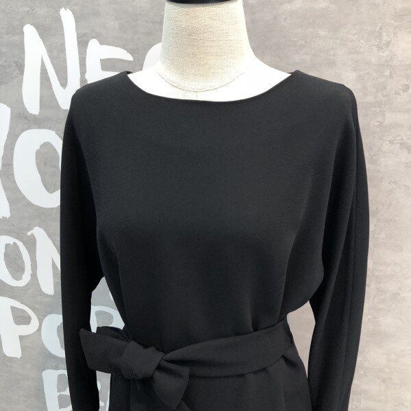 심플한 라운드형의 단아한 분위기를 연출하는 원피스로 허리리본 포인트와 뒷라인 절개선이 여성스러운 실루엣 연출을 도와주는 심플하여 더욱 고급진 원피스입니다