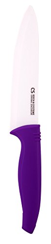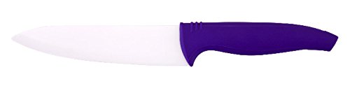 The 6-Inch chef knife is made with high-quality ceramic zirconium and comfortable purple handle. This multipurpose chef knife is perfect for chopping, mincing, slicing, and dicing. Ceramic blade will keep sharp for a long time! Made in China.