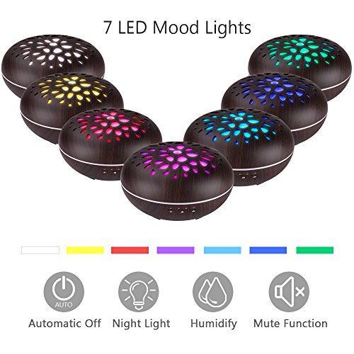 Ajustable LED Light——You can choose 7 smoothing colors between two mode : dim and brighter. The color can be cycled through or set it to one fixed color. Also can be set to 3 timer settings( 1 hour/3 hours/6 hours), suitable to your needs.