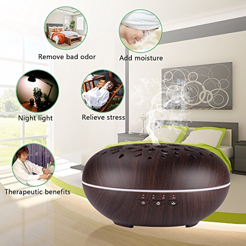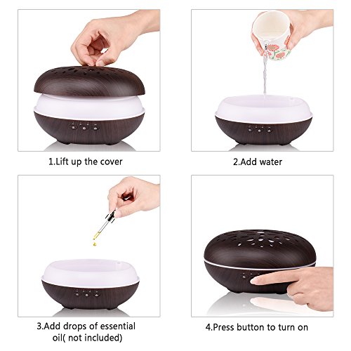 Large Capacity And Longer Mist Timer – Water tank:450ml. Diffuses all natural essential oils with aroma coverage that lasts up to 10 hours of continuous output and produce up to 30ml of moisture per hour. Automatic power off function ensures safety when water runs out.