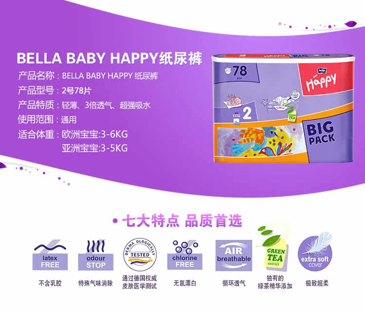 Bella Baby Happy  贝拉2号尿不湿 纸尿裤78片