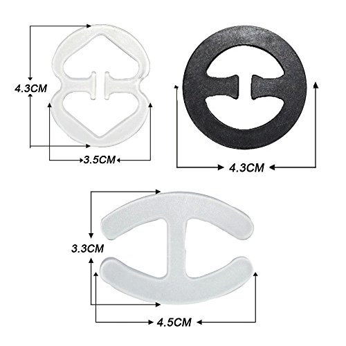 Package Include: 9pcs fully detachable bra clips. 3 shapes: Round, "H" and "8". Clear, Black, Beige for each shape.