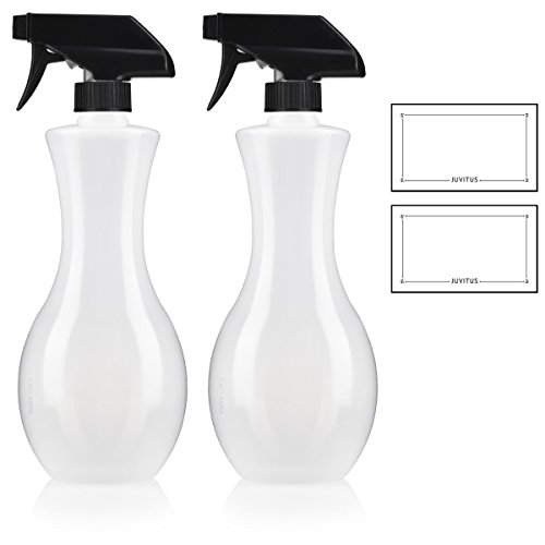 20 oz / 590 ml Sculpted Clear Natural Refillable Plastic Squeeze Bottle with Trigger Sprayer (2 PACK) + Labels
