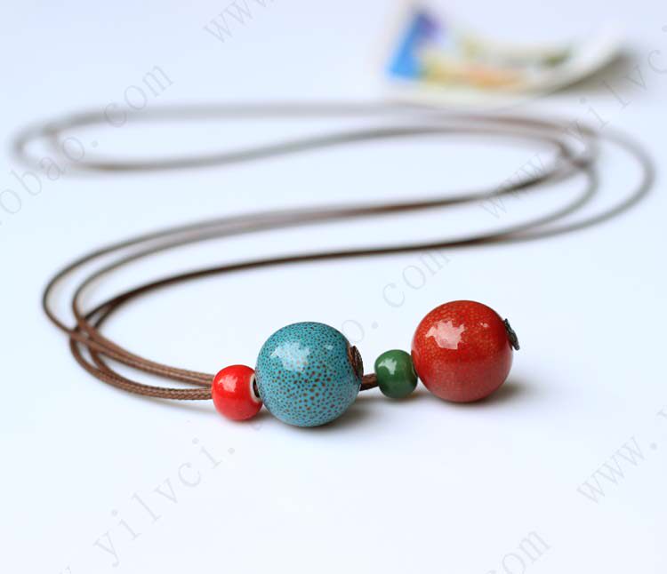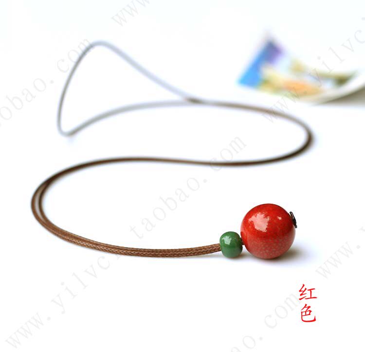 National Wind temperament single bead simple creative ceramic handmade jewelry necklace pendant