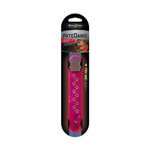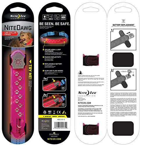 Studio : Nite Ize Publisher : Nite Ize Binding : Misc. Product Description The Nite Ize Nite Dawg LED collar cover is the answer to every night-loving dog owner's problem: losing sight of their best buddy after sundown. Durable, weather resistant and lightweight, this super low-profile (not much thicker than a bandage) flexible LED illuminated strip fits comfortably over almost any dog's collar and closes securely with two micro hook-and-loop tabs. Its bright, light-transmitting polymer core is illuminated by a super efficient red LED bulb with two mode settings - flash and steady glow, and is housed in a high-quality thermal plastic urethane exterior. Visible up to 1000 feet in the dark, and powered by a long-life, easily replaceable battery (included), the Night Dawg LED Collar Cover is available in two colors, with decorative paw prints that provide passive reflectivity for visibility even when not illuminated. Simply the best way to keep your dog's presence clear and obvious, from dusk till dawn! With the bright, flexible Nite Dawg LED Collar Cover, you'll never have to wonder where, oh where, your little (or medium, or big) dog has gone again. And neither will anyone else. 0