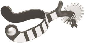 Product DescriptionThis Show Spur Features A 1" Blued Steel Steel Band W/ Silver Overlay Trim, 2 1/2" Chap Guard Shank, And A 2 1/4" Silver Steel 20 Point Rowel W/ Jingle Bobs.0