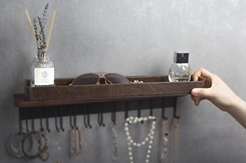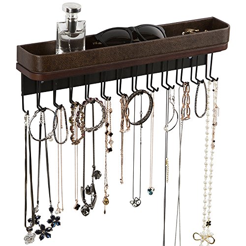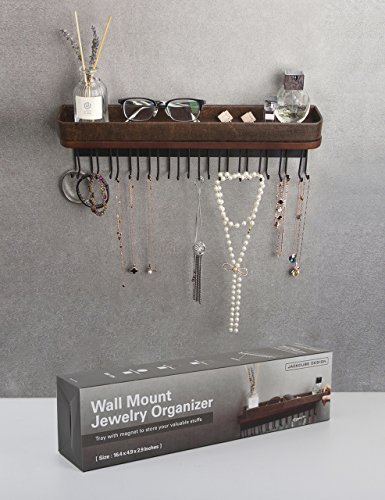 Jack Cube Hanging Jewelry Organizer Necklace Hanger Bracelet Holder Wall Mount Necklace Organizer with 25 Hooks(Brown) - :MK124A (16.38 x 4.88 x 2.93 inches)