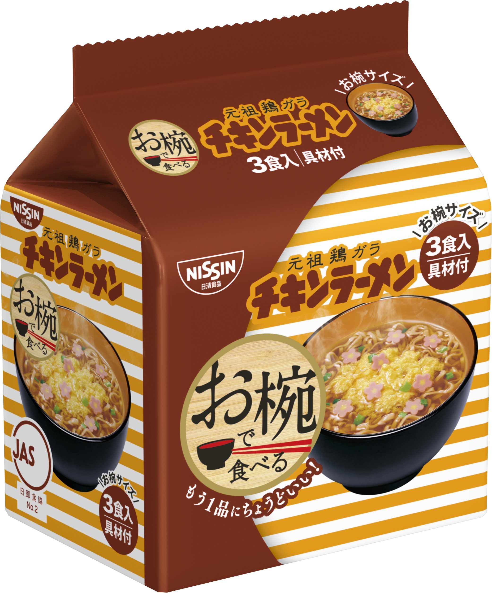 "Chicken noodle 3-meal pack to eat in Nissin Bowl" is just right for one article with the bowl size!