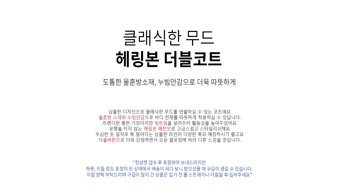 | 소재(Material) | 울(wool/)30%+폴리(polyester/)70%안감폴리(polyester/)100% |