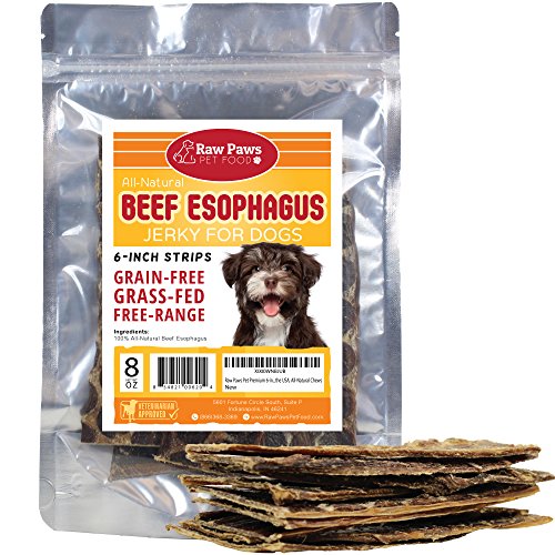 -. Title : Raw Paws Pet Premium 6-inch Beef Jerky Dog Treats - Esophagus Dog Treats - Beef Jerky for Dogs - Naturally High Glucosamine & Chondroitin Dog Treats - Grain-Free, No Antibiotics or Hormones