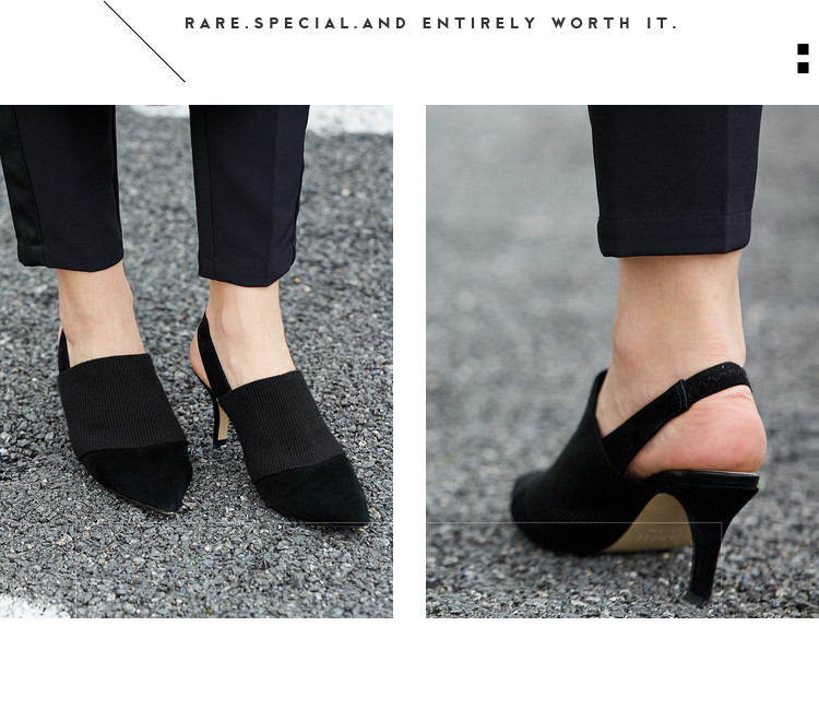 凌厉包头与橡筋带勾起脚踝以露脚跟,