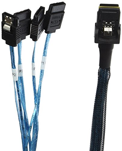 - 1m 30AWG Internal Mini SAS 36pin (SFF-8087) Male with Latch to SATA 7pin Female (x4) Forward Breakout Cable