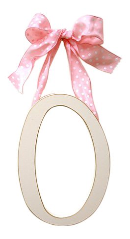New Arrivals Wooden Letter O with Pink Polka Dot Ribbon, Cream