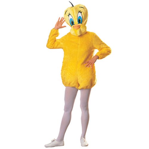 -. Binding : Apparel -. Brand : Rubie's -. ClothingSize : Standard -. Color : Yellow -. Department : womens -. Feature : Officially licensed Tweety costume comes complete with jumpsuit and oversized head / Rubies lets you pair costumes with Sylvester, Taz, Elmer and the rest of the Looney Tunes crew / Costume officially licensed to Rubies Costume Company - monster or movie star, hero or villain, licensed or unlicensed, Rubies has all the looks you and your kids crave / One size fits most / Rubies Costume Company is a family owned business based in New York with more than 60 years of experience bringing children and adults the costumes and accessories they want to Halloween and year-round dress up -. Genre : TV/Movie Characters -. IsAdultProduct : 0 -. Label : Rubies Costumes - Apparel -. Manufacturer : Rubies Costumes - Apparel -. MPN : 15561 -. PackageQuantity : 1 -. PartNumber : 15561 -. ProductGroup : Apparel -. ProductTypeName : ADULT_COSTUME -. Publisher : Rubies Costumes - Apparel -. Size : Standard -. Studio : Rubies Costumes - Apparel -. Title : Looney Tunes Deluxe Tweety Bird Costume