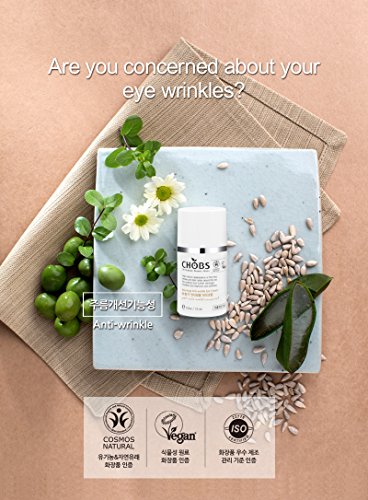 CHOBS Anti-wrinkle Eye Cream moisturizes your skin and removes wrinkles with 98% of natural-derived ingredients, including organic moringa leaf extract, organic centella asiatica leaf water, and organic sunflower seed oil.