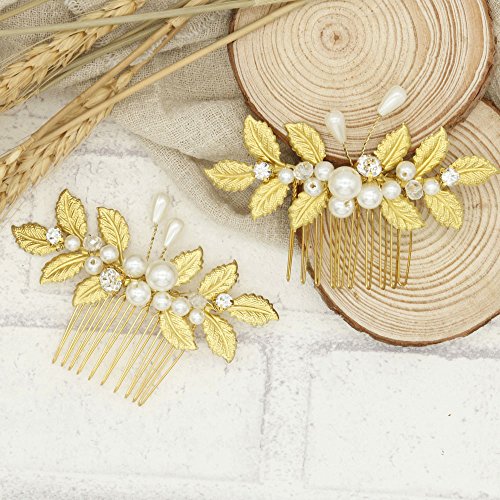 Missgrace Bridal Crystal Leaf Hair Comb Special Occasion Women Rhinestone Hair Comb Wedding Hair Accessories( Pack of 2 )