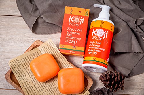 - PAPAYA & KOJIC FORMULA: This lightening soap uses a unique combination of papaya enzymes and kojic acid that is very powerful and effective so you can naturally and safely lighten your skin tone. The Koji White bleaching soap also has a refreshing tropical scent so you can have a pleasant spa experience every time you use it.