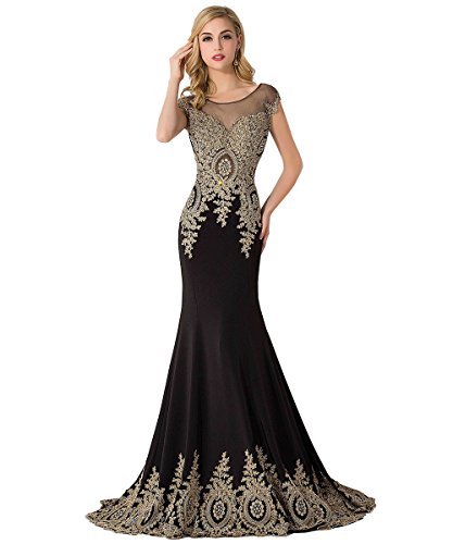 This gorgeous evening dress features illusion back,gold lace,it is worthy of celebration!
