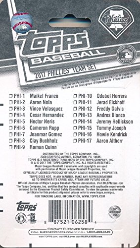 Philadelphia Phillies 2017 Topps Baseball EXCLUSIVE Special Limited Edition 17 Card Complete Team Set with Maikel Franco, Aaron Nola & Many More Stars & Rookies! Shipped in Bubble Mailer! WOWZZER!