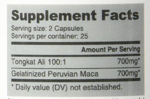 - Feature : Each capsule contains 350 mg of Gelantinized Maca Root Powder and 350 mg of Indonesia Tongkat Ali Extract 100:1 extract strength / Unique male enhancement formula combining Gelantinized Maca Root Powder with Tongkat Ali Extract / 50 capsules per bottle / Natural male enhancement and a natural testosterone booster / From the manufacturer of SD-200 Tongkat Ali Extract