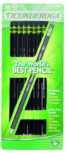 Dixon Ticonderoga Wood-Cased #2 Pencils, Pre-Sharpened, Box of 10, Black (13915)