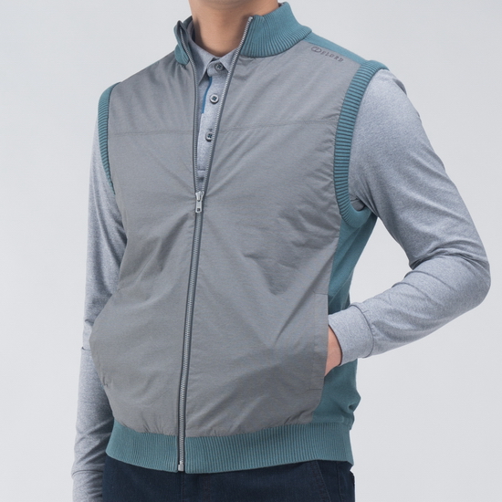 - 몸판 이소재 배색을 적용한 남성 베스트.