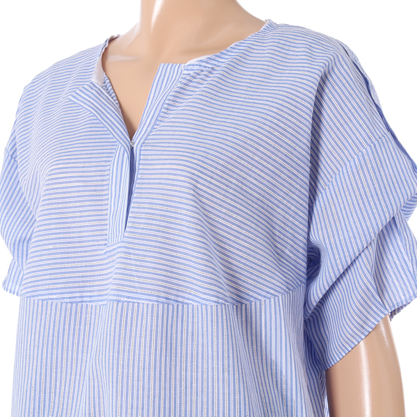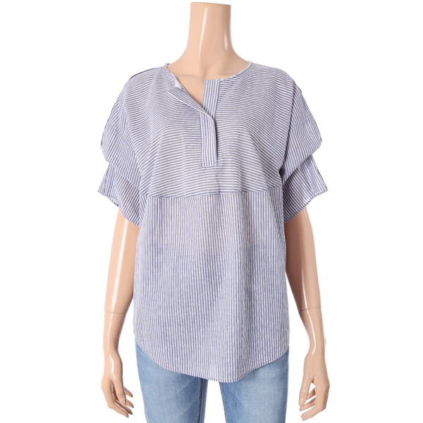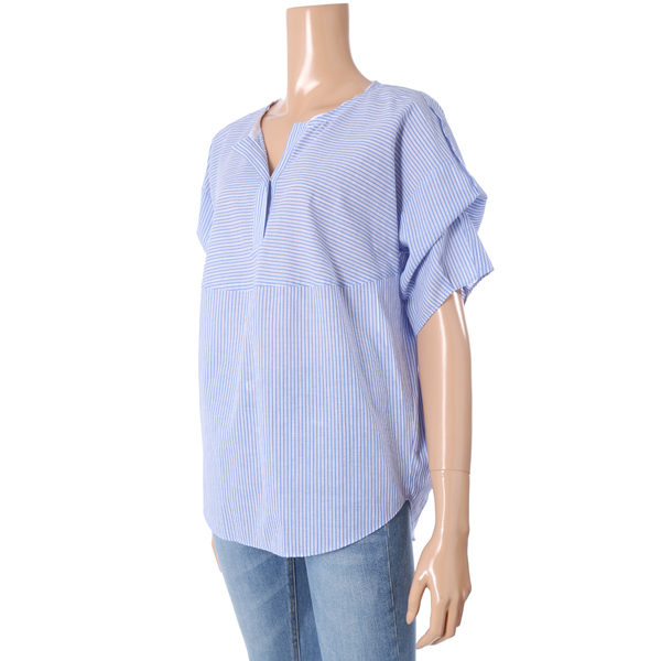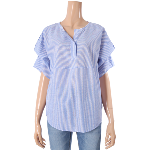 ㅡ볼륨있는 소매디자인과 잔잔하게 비치는 펀칭ST의 스트라이프 패턴이 청량감있는 썸머룩입니다.