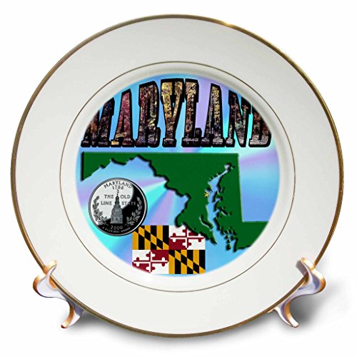 3dRose cp_55456_1 State Map, Flag, Quarter and Picture Text of Maryland Porcelain Plate, 8-Inch