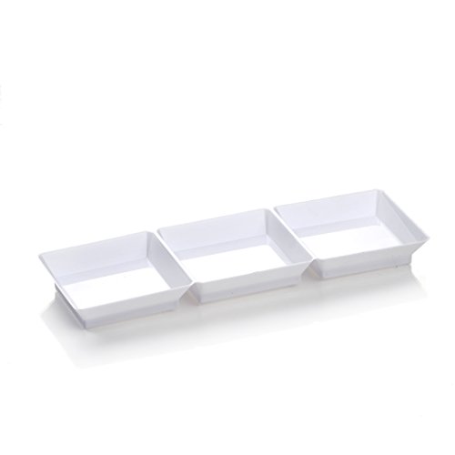 These plates are a set of three connected together, so they are perfect for serving assorted food. Lids for these plates are available, so they are also great for transporting food.