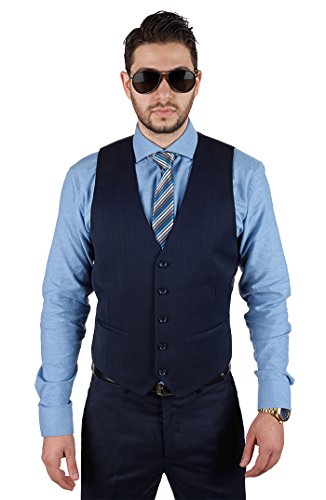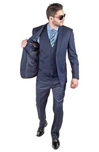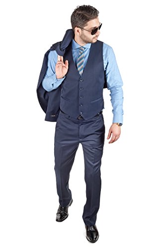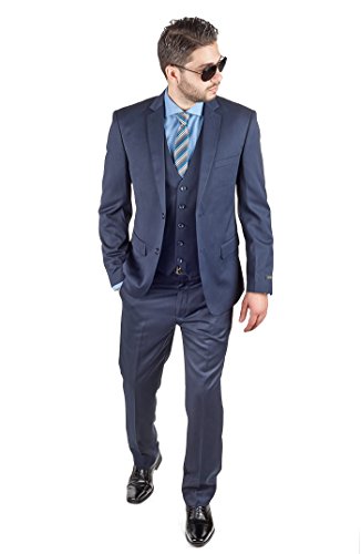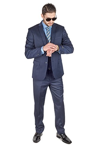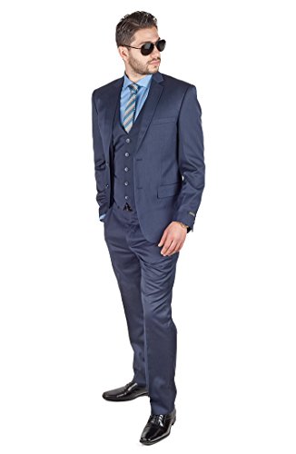 -. Title : Slim Fit 3 Piece Vest Navy Blue Suit 2 Button Notch Lapel By Azar Man