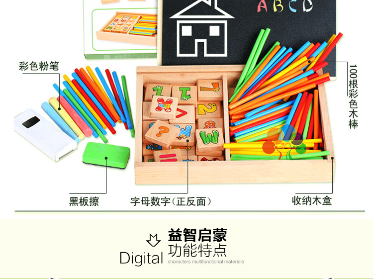 The utility model is provided with a wooden box which is convenient for storing and difficult to be lost. The front is an arithmetic board, the back is a blackboard, the writing can be written, and the writing algorithm is convenient to use, and the natural wood is adopted,