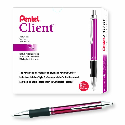 Pentel Client Retractable Ballpoint Pen, Medium Line, Red Barrel, Black Ink, Box of 12 (BK910B-A)