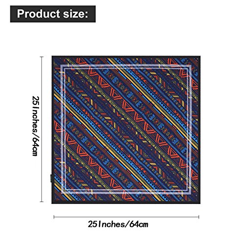Suit For Most Of People Our bandanas are 25 x 25 inches (64x64 cm). This size solution perfectly fits most of the people. When you use our bandana square, you will be more perfect and cool.