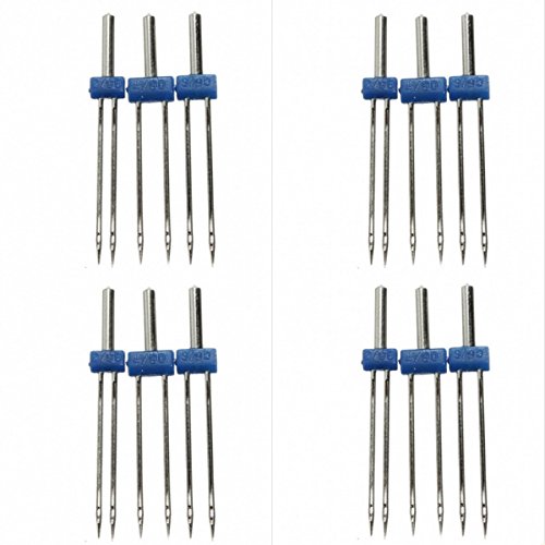 -. Feature : Material: Stainless Steel / Good accessories for sewing machine. / With double needle,it can sew two as like as two peas decorative line. You can use straight stitch or pattern stitch with two different colors of thread, making it more beautiful. / Color: Blue / 3 Size Mixed 2.0/90 3.0/90 4.0/90, 4pcs per size, total 12pcs