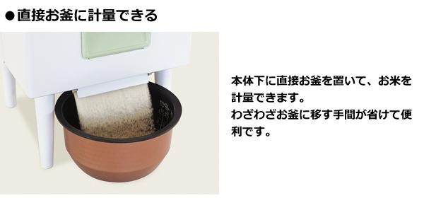 | 直接お釜に計量できる計量米びつです。 |
