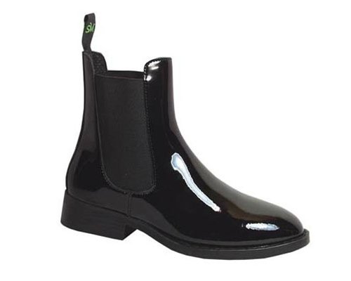 You will love to ride in these traditional English Paddock Boots from Smoky Mountain. The black leather riding boots feature a cap toe, side goring, and gleaming patent finish. Great equestrian lifestyles begin with a horse to call your own and a pair of classic English riding boots by Smoky Mountain.Feature